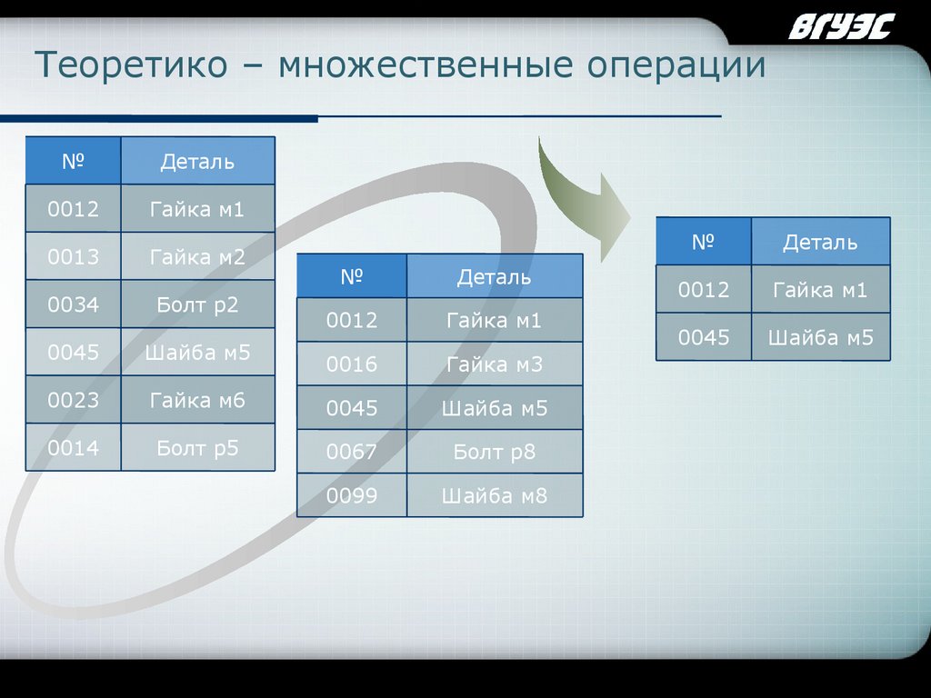 Реляционная алгебра, операции над множествами.