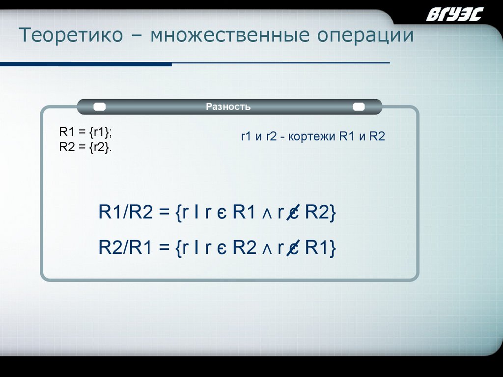 Company LogoТеоретико – множественные операции