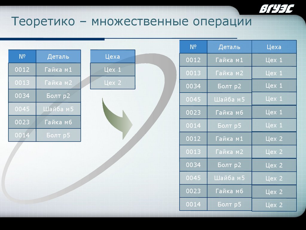 • теоретико - множественные операции