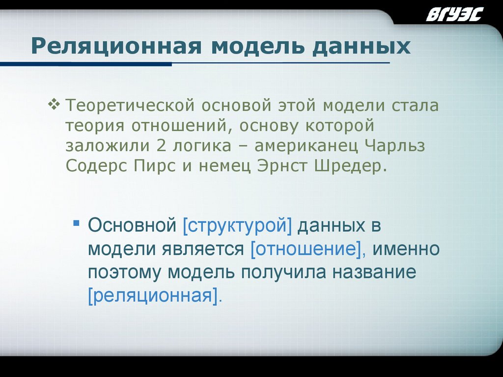 LOGOРеляционная модель данных