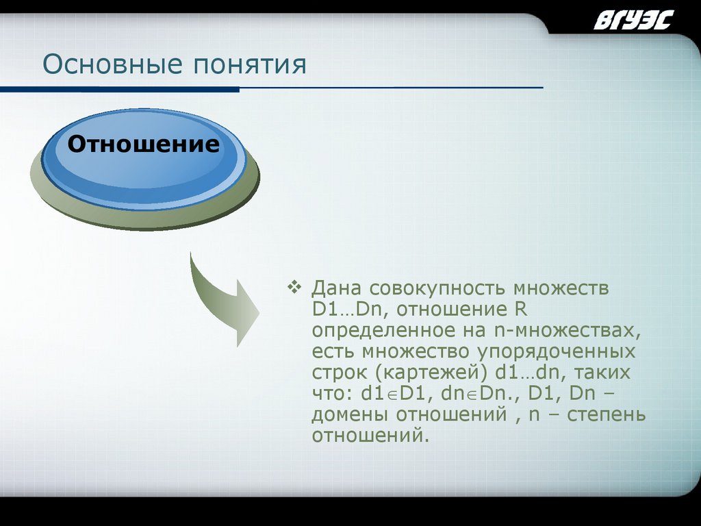 домены отношений , n – степень
