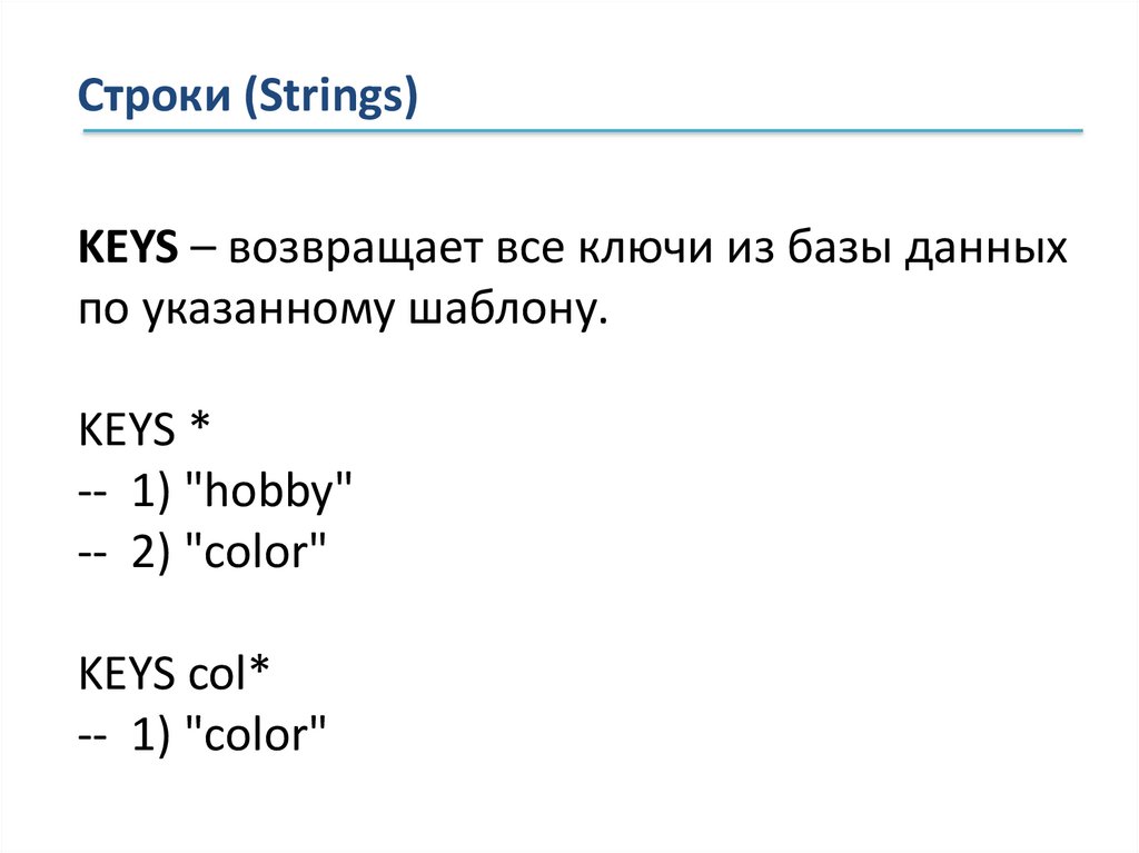Строки (Strings)KEYS – возвращает все ключи из базы данных