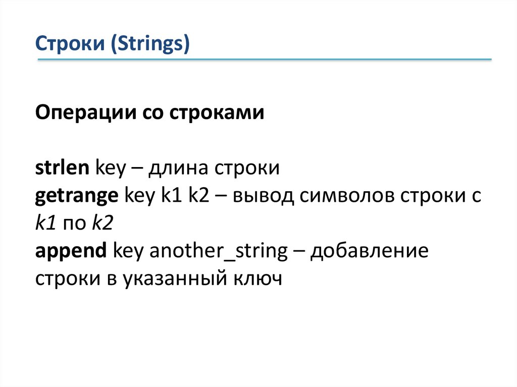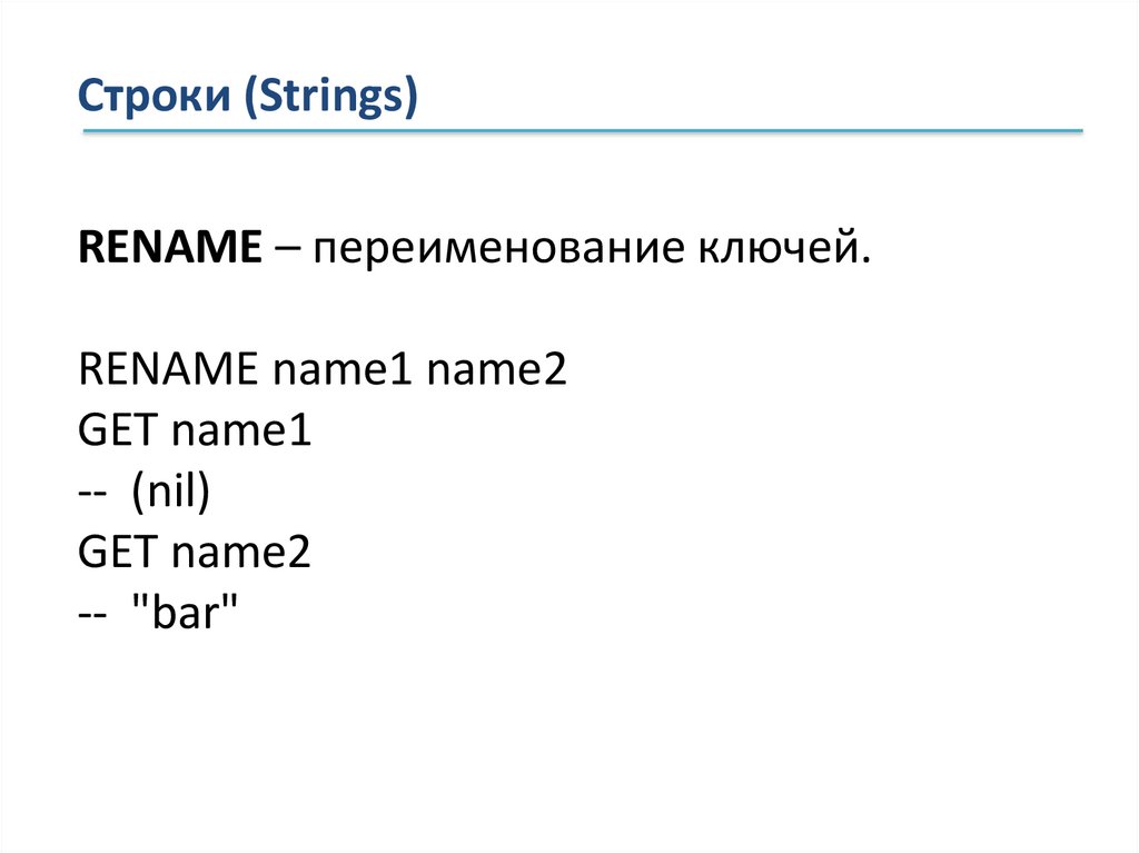 Строки (Strings)RENAME – переименование ключей.