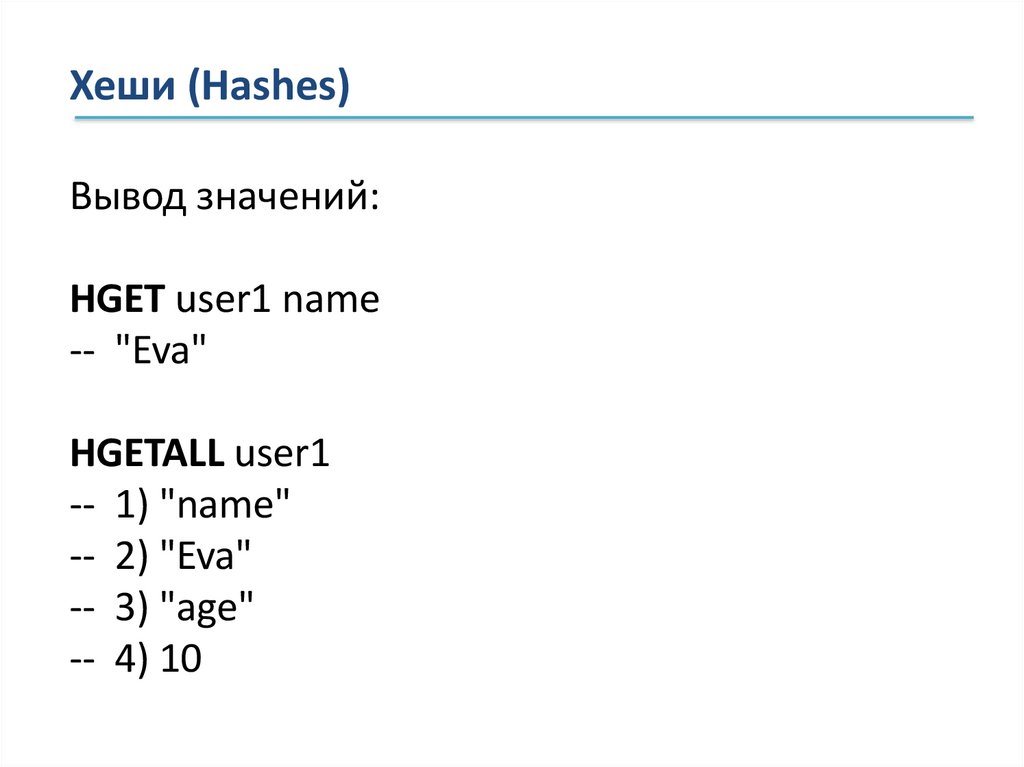 Хеши (Hashes)Вывод значений: