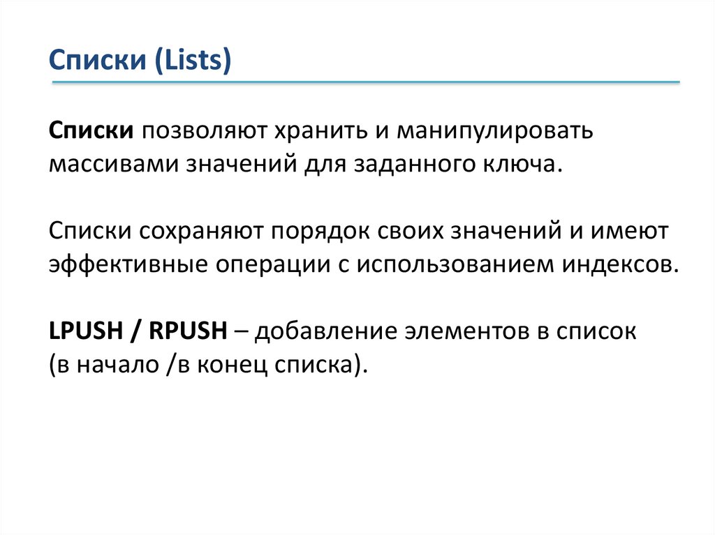 Списки (Lists)Списки позволяют хранить и манипулировать