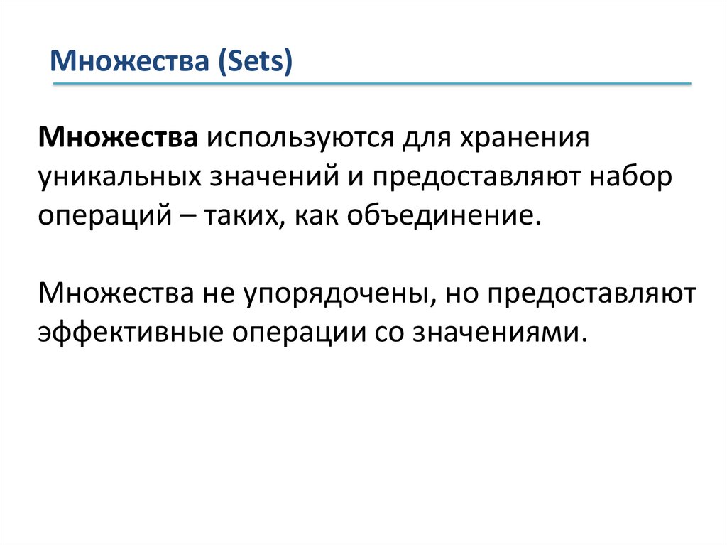Множества (Sets). Не упорядоченное множество строк,