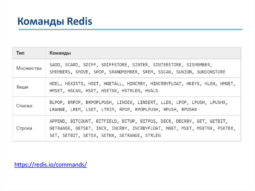 Команды Redishttps://redis.io/commands/