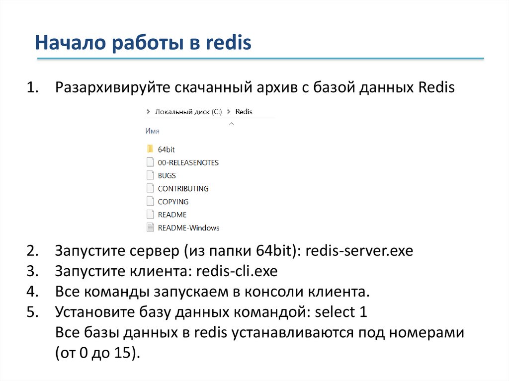 Начало работы в redis1. Разархивируйте скачанный архив с базой данных Redis