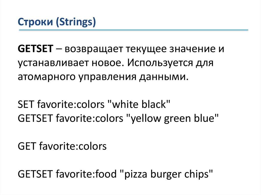 Строки (Strings)GETSET – возвращает текущее значение и