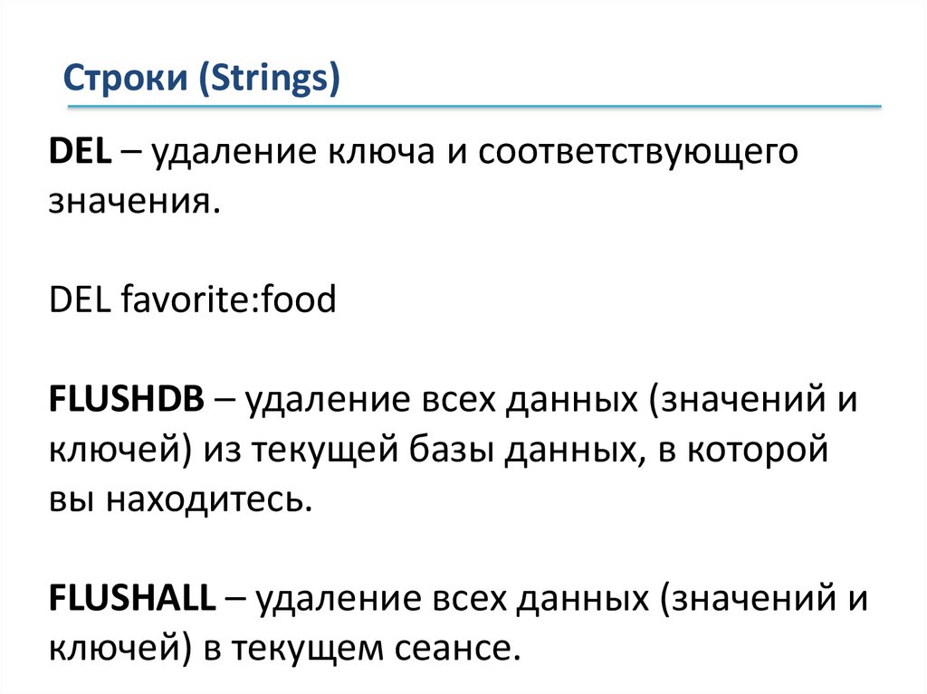 Строки (Strings)DEL – удаление ключа и соответствующего