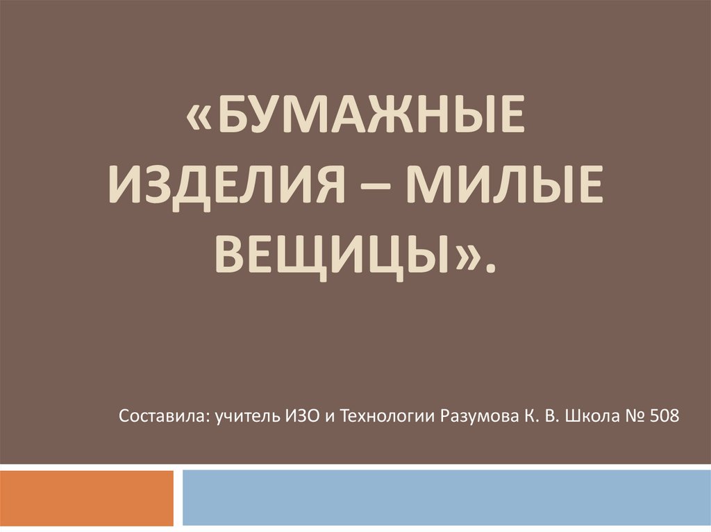 1. «БУМАЖНЫЕ ИЗДЕЛИЯ – МИЛЫЕ ВЕЩИЦЫ».