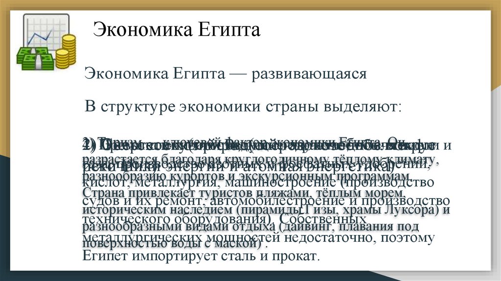Экономика ЕгиптаЭкономика Египта — развивающаяся