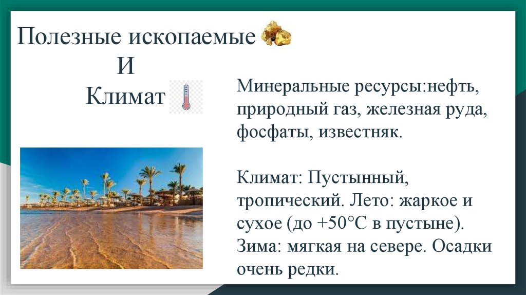 Рельеф•Почти вся территория страны лежит в зоне тропических пустынь. При этом