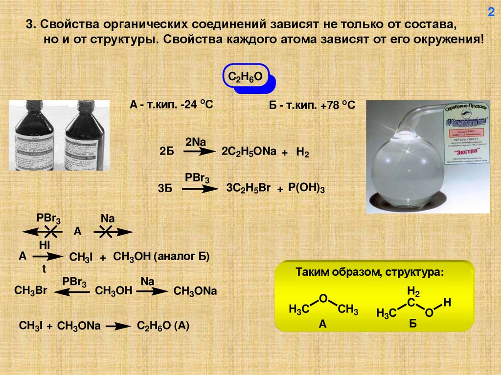 3. Свойства органических соединений зависят не только от состава,но и от структуры. Свойства каждого атома зависят от его окружения!