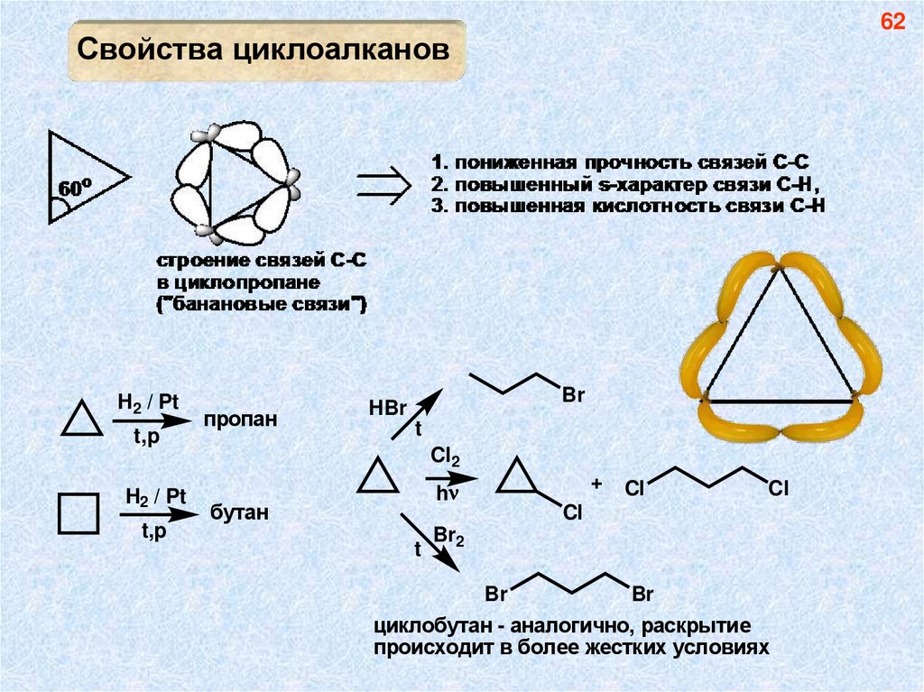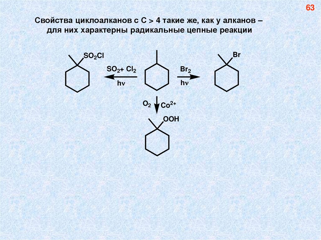63Свойства циклоалканов с С > 4 такие же, как у алканов –