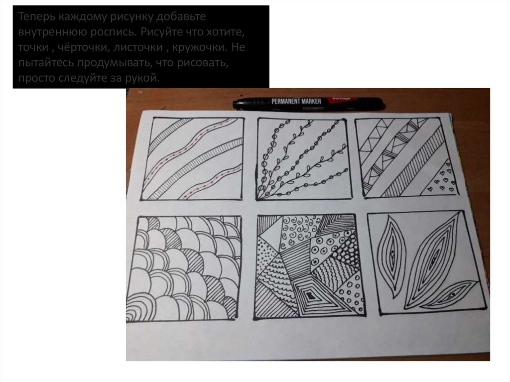 Теперь каждому рисунку добавьтевнутреннюю роспись. Рисуйте что хотите,
