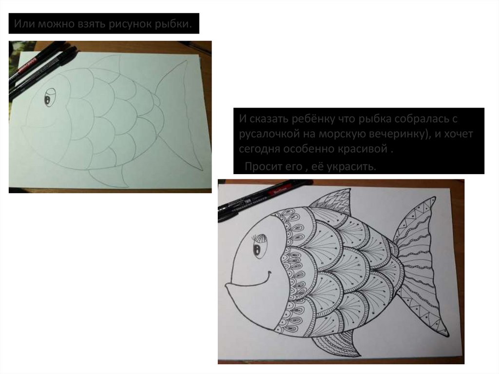 Или можно взять рисунок рыбки.И сказать ребёнку что рыбка собралась с