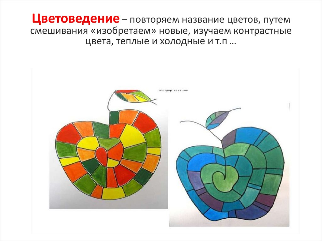 Цветоведение – повторяем название цветов, путемсмешивания «изобретаем» новые, изучаем контрастные