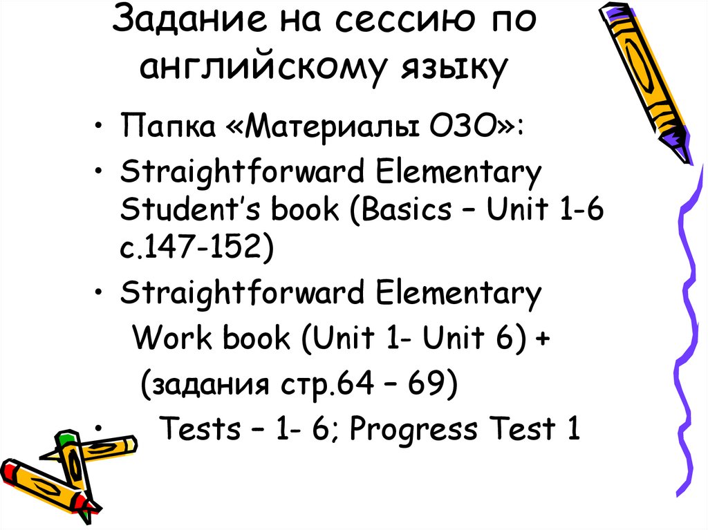 • Папка «Материалы ОЗО»:• Straightforward Elementary