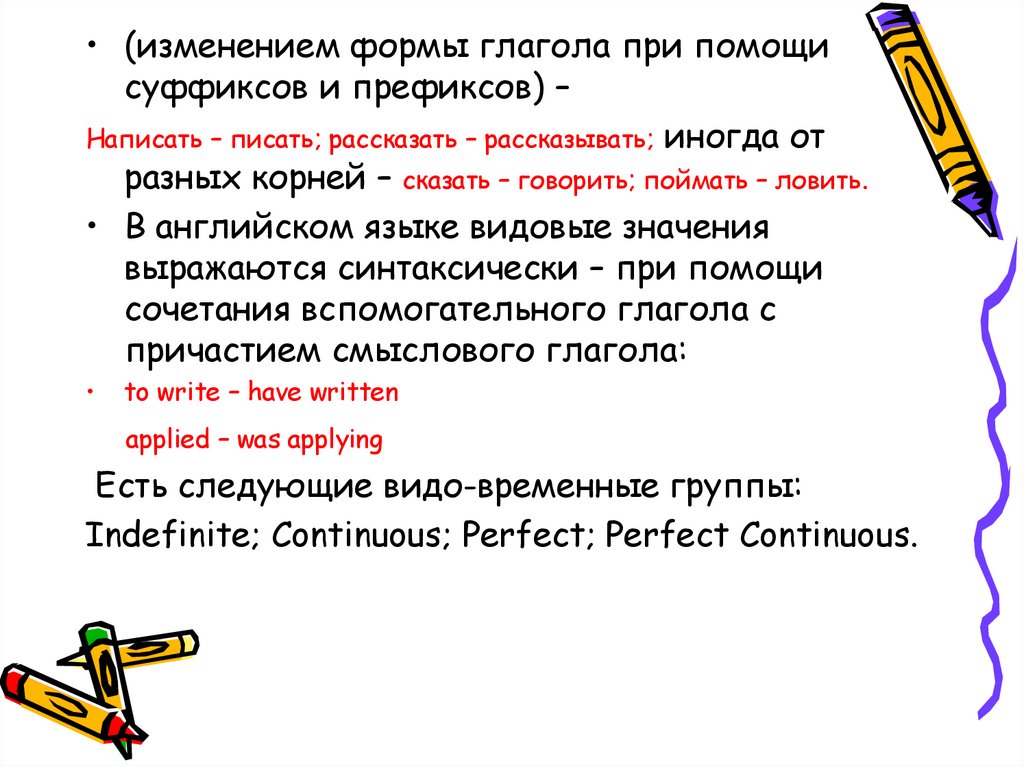 могут употребляться в целом ряде видовременных форм (Continuous). Таких
