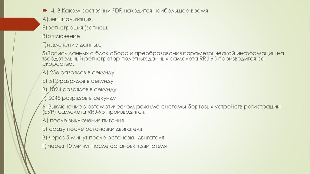 1. В систему бортовых устройств регистрации (БУР) самолета RRJ-95 не входят:А)Системы регистрации параметрической информации