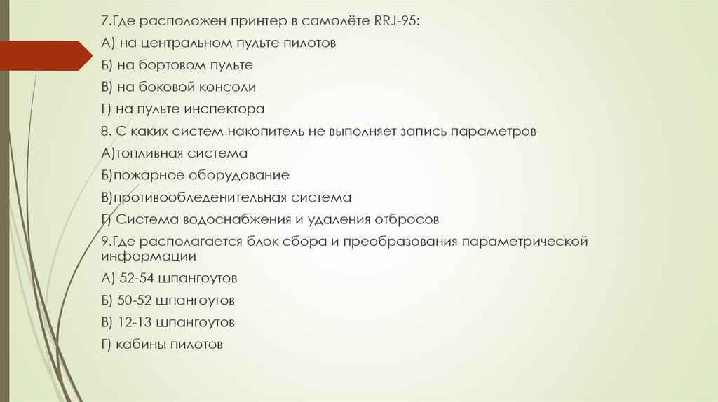 7.Где расположен принтер в самолёте RRJ-95:А) на центральном пульте пилотов