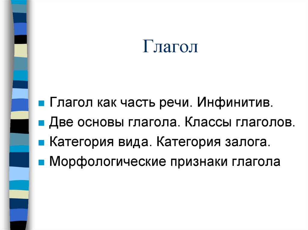 Глагол как часть речи. Инфинитив.Две основы глагола. Классы глаголов.