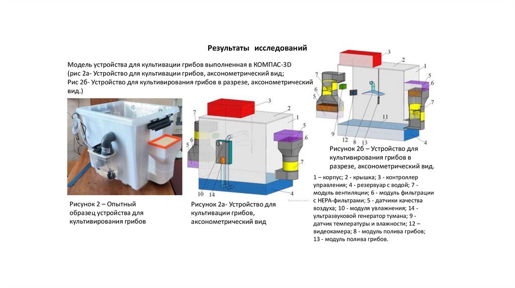 Результаты исследованийМодель устройства для культивации грибов выполненная в КОМПАС-3D