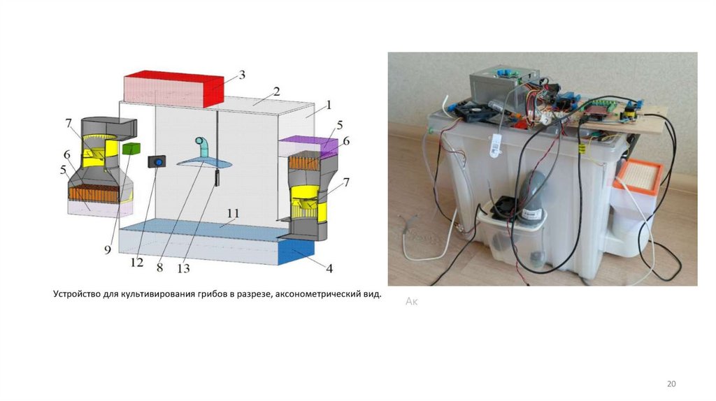 (рис 2а- Устройство для культивации грибов, аксонометрический вид;