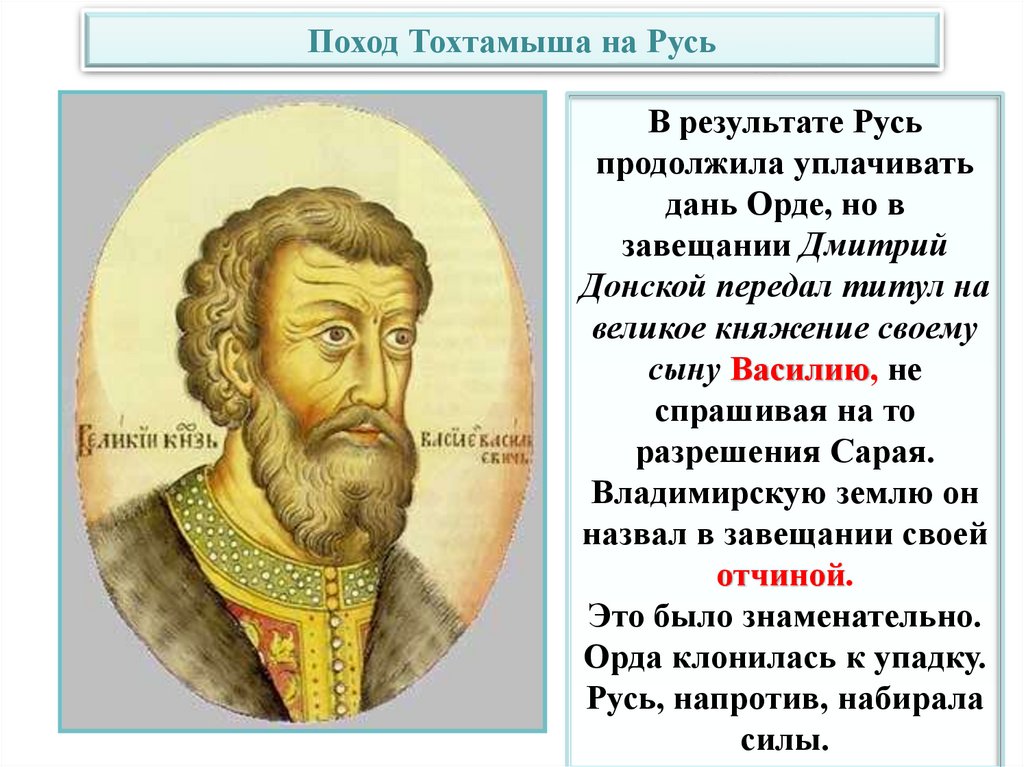 Дмитрий Донской умер в1389 г. Сыну Василию он