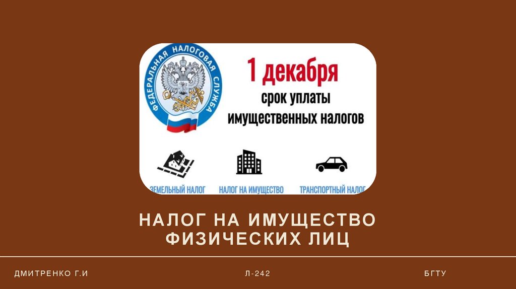 Н А Л О ГА Н А И М У Щ Е СТ ВО Ф И З И Ч Е С К И Х Л И Ц