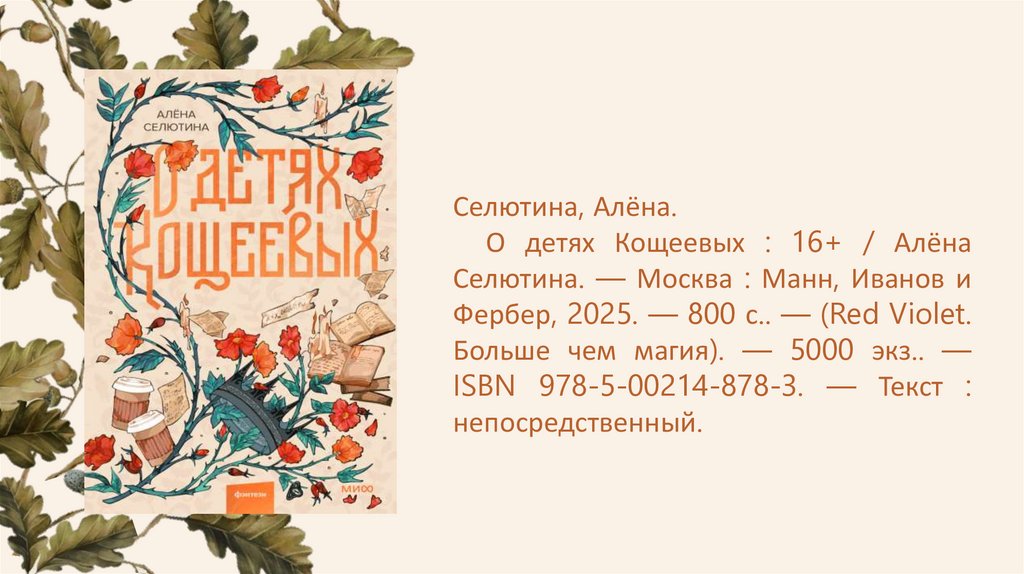 Селютина, Алёна.О детях Кощеевых : 16+ / Алёна