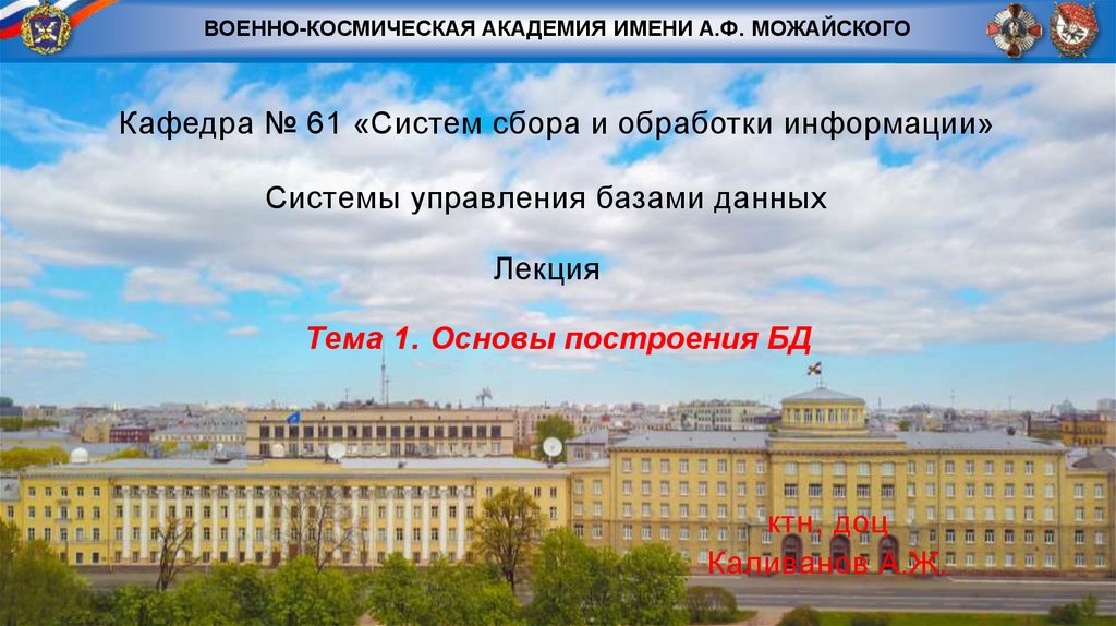 ВОЕННО-КОСМИЧЕСКАЯ АКАДЕМИЯ ИМЕНИ А.Ф. МОЖАЙСКОГОКафедра № 61 «Систем сбора и обработки информации»