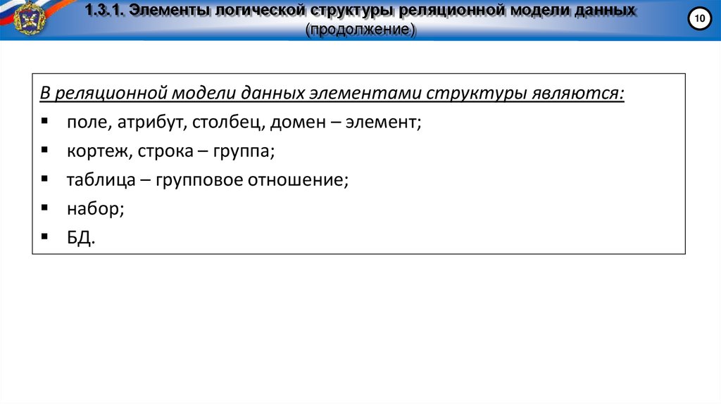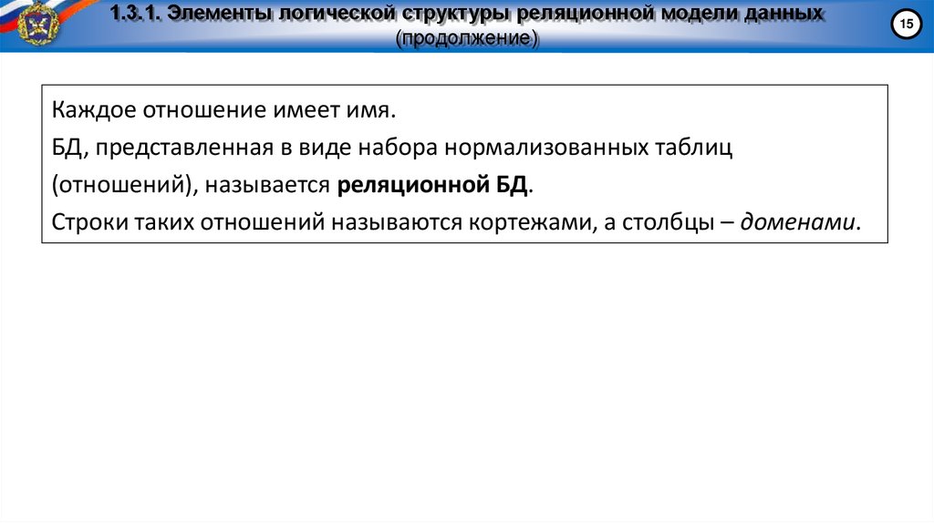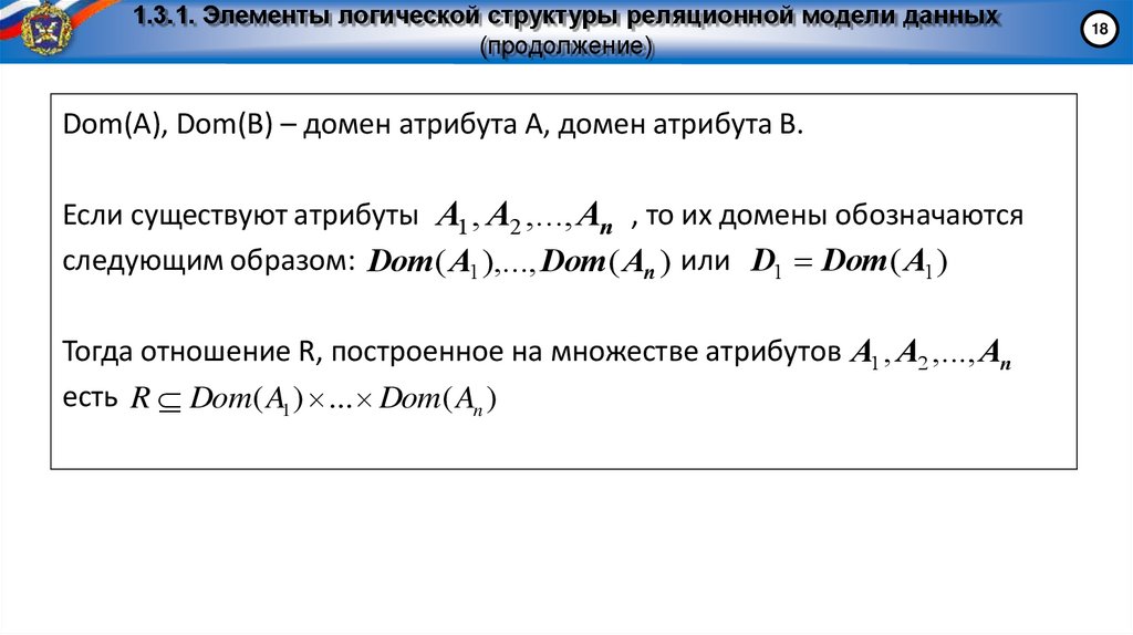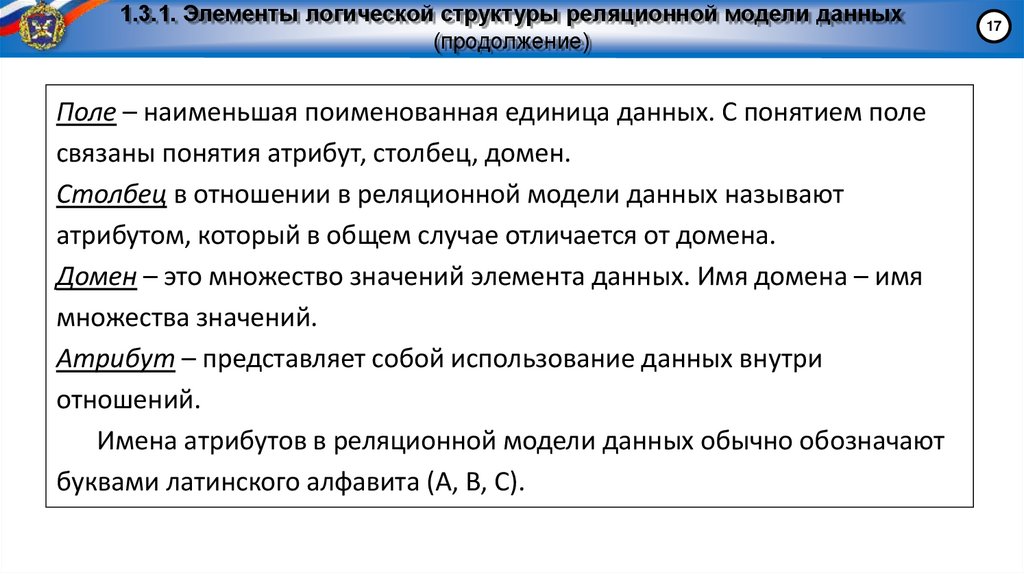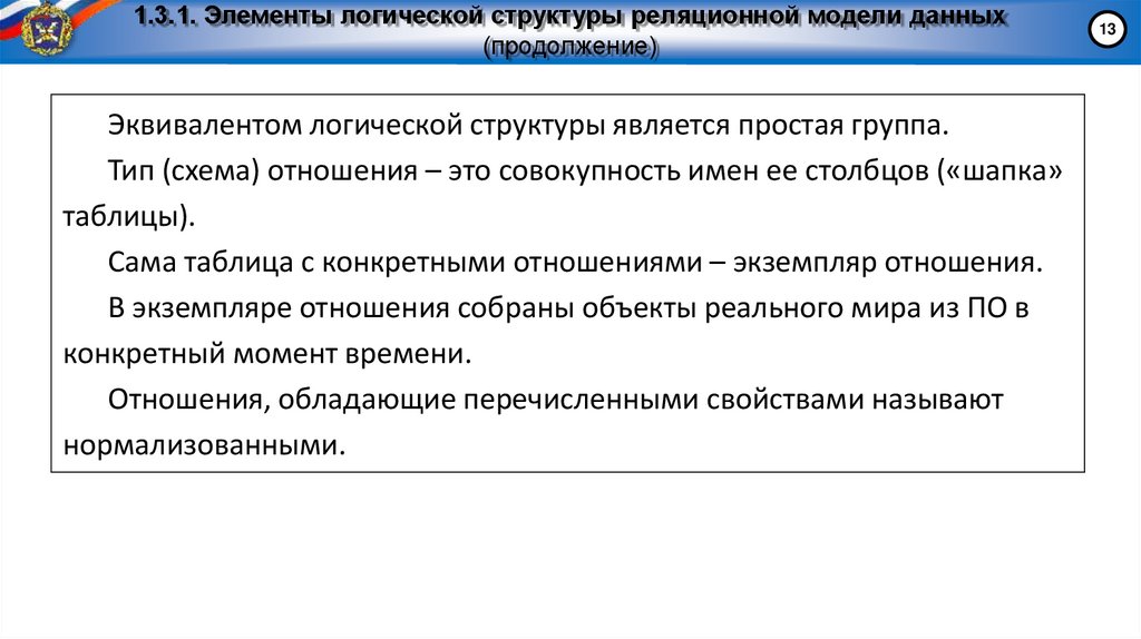 1.3.1. Элементы логической структуры реляционной модели данных(продолжение)