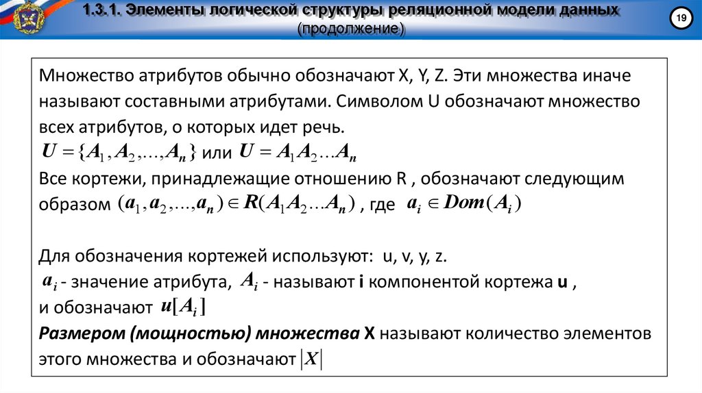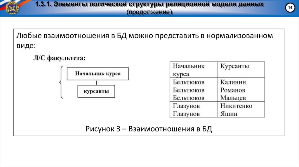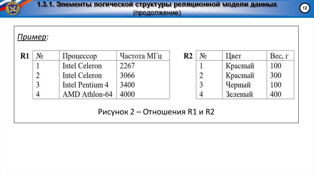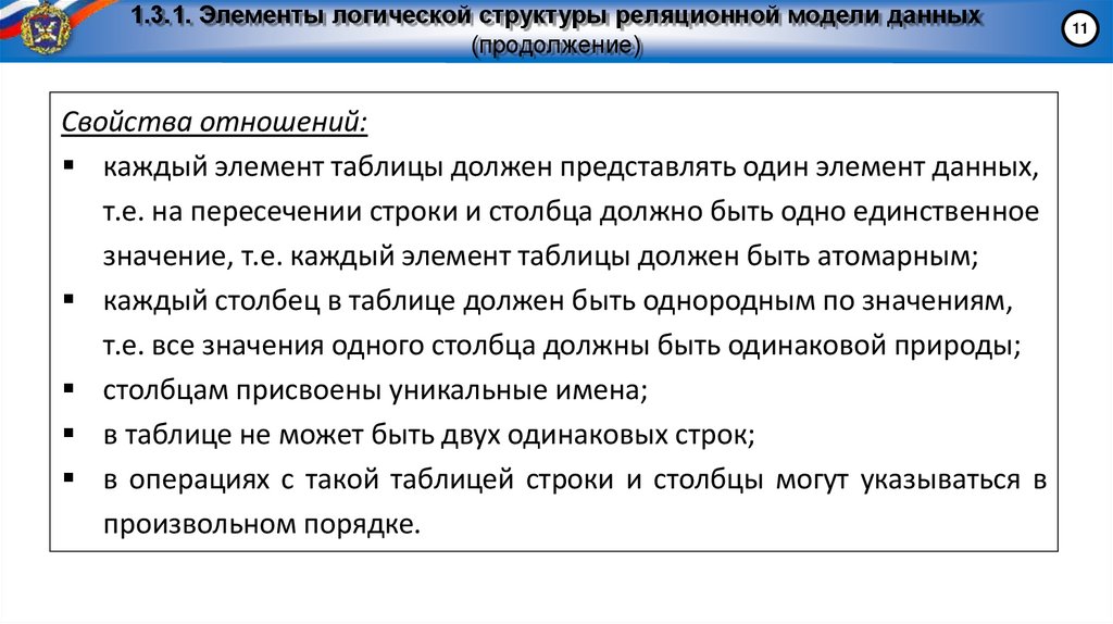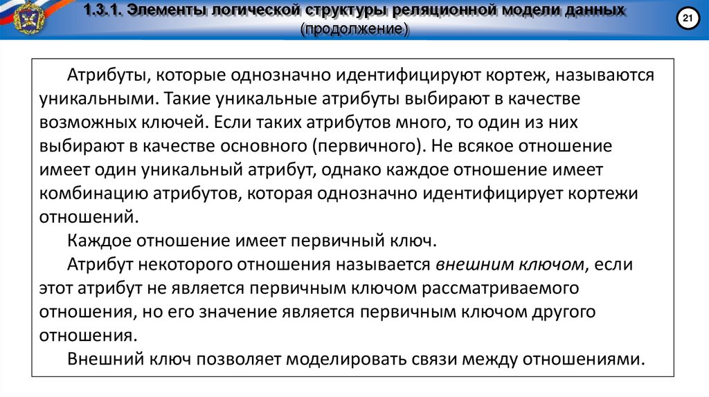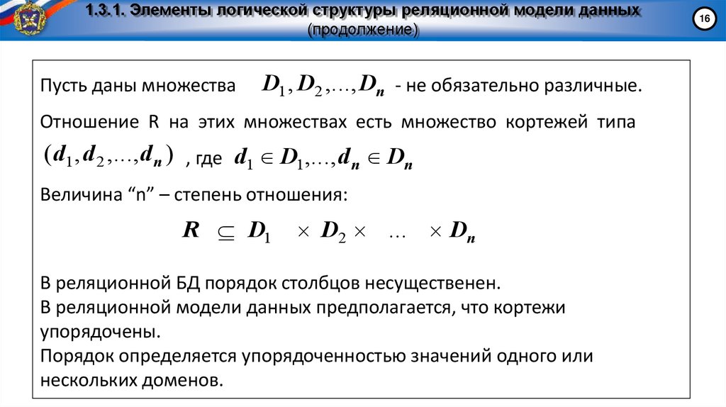 1.3.1. Элементы логической структуры реляционной модели данных(продолжение)