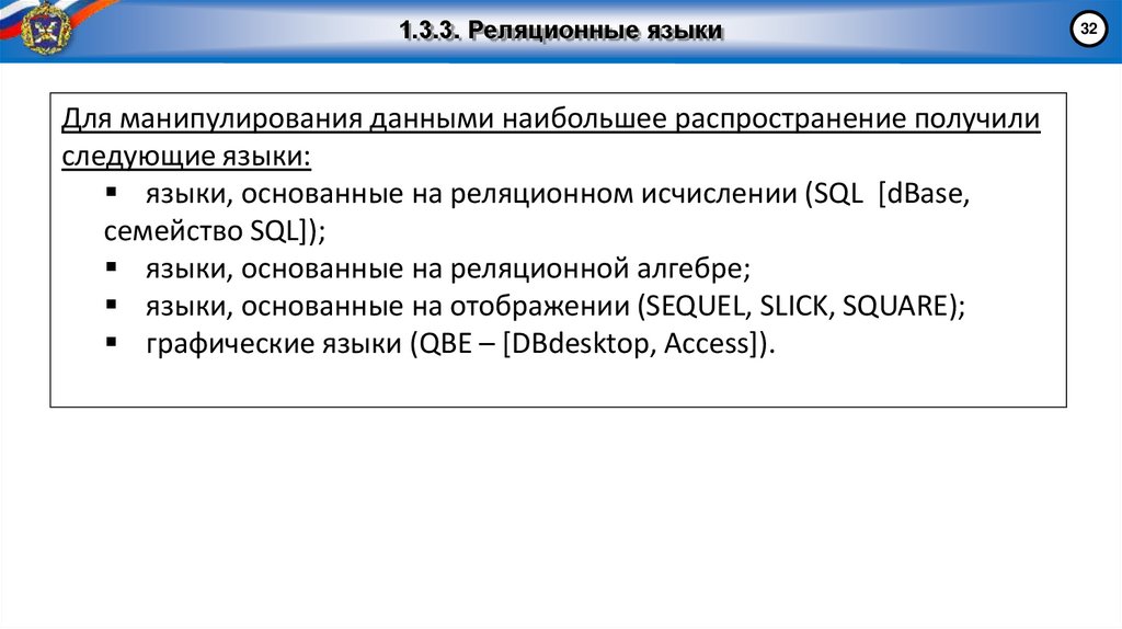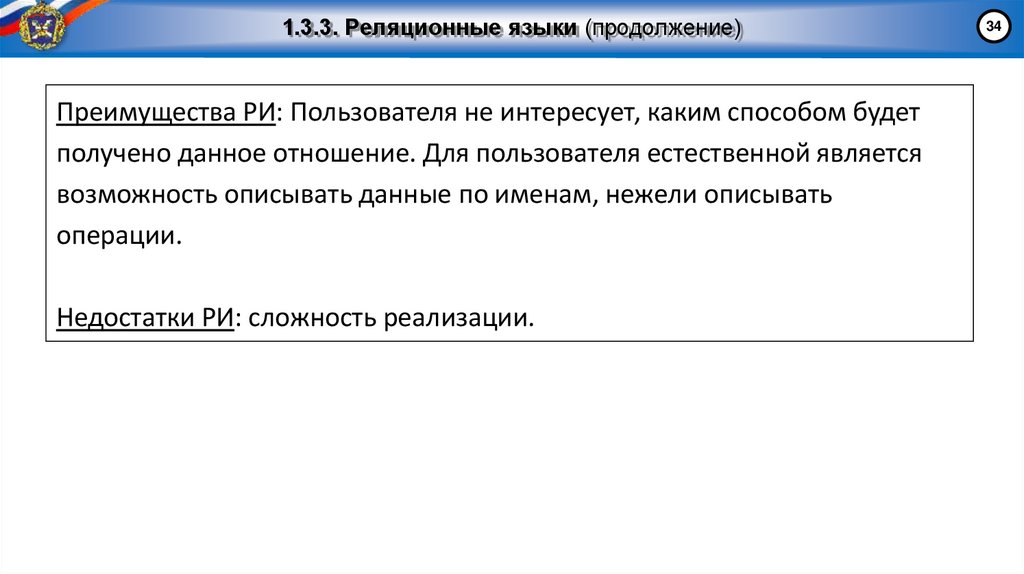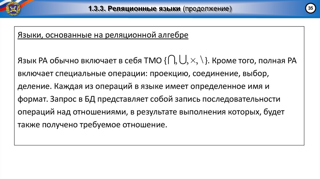 1.3.3. Реляционные языки (продолжение)Языки, основанные на реляционной алгебре