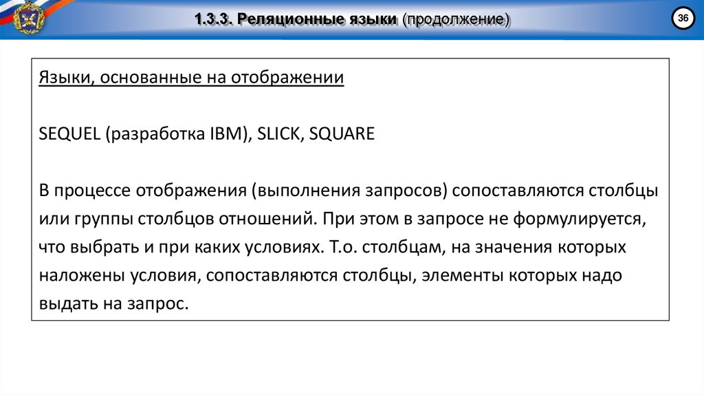 1.3.3. Реляционные языки (продолжение)Языки, основанные на отображении