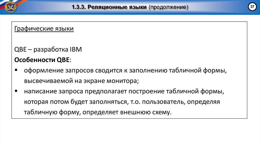 1.3.3. Реляционные языки (продолжение)Графические языки