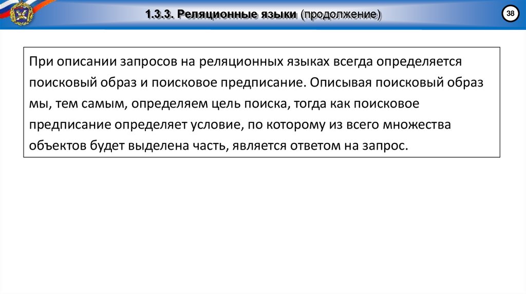1.3.3. Реляционные языки (продолжение)При описании запросов на реляционных языках всегда определяется
