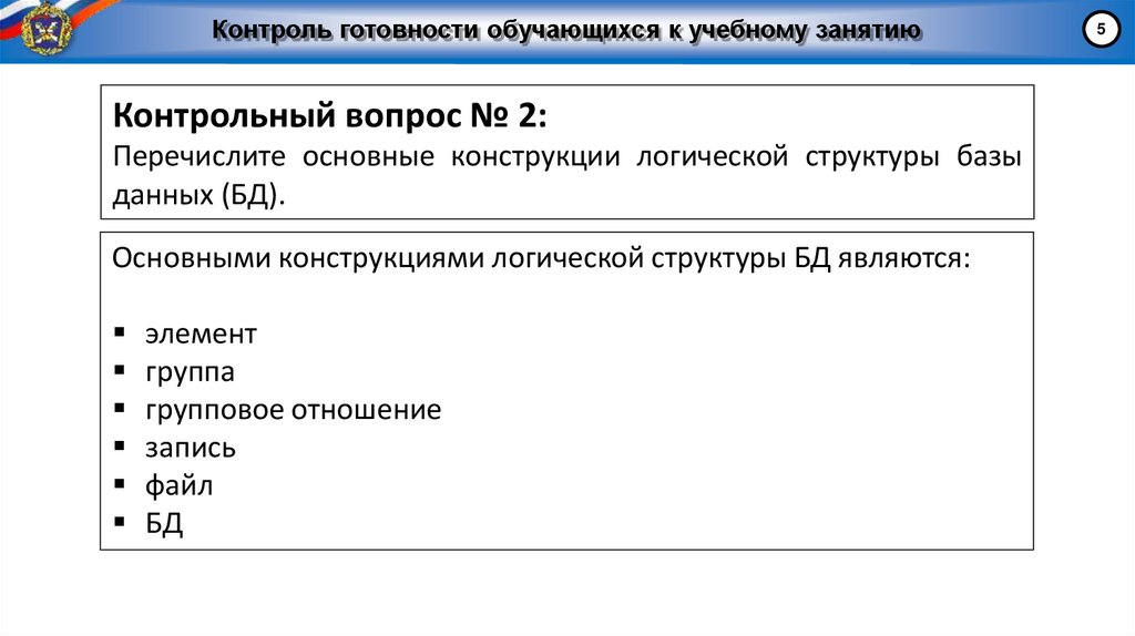 Контроль готовности обучающихся к учебному занятиюКонтрольный вопрос № 2: