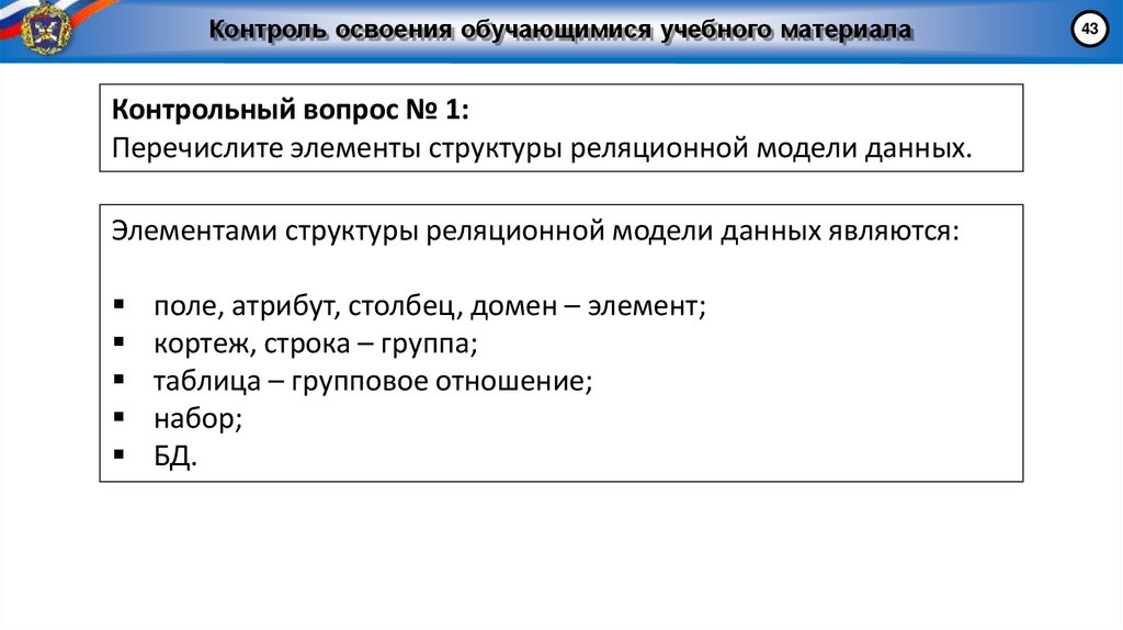 Контроль освоения обучающимися учебного материалаКонтрольный вопрос № 1: