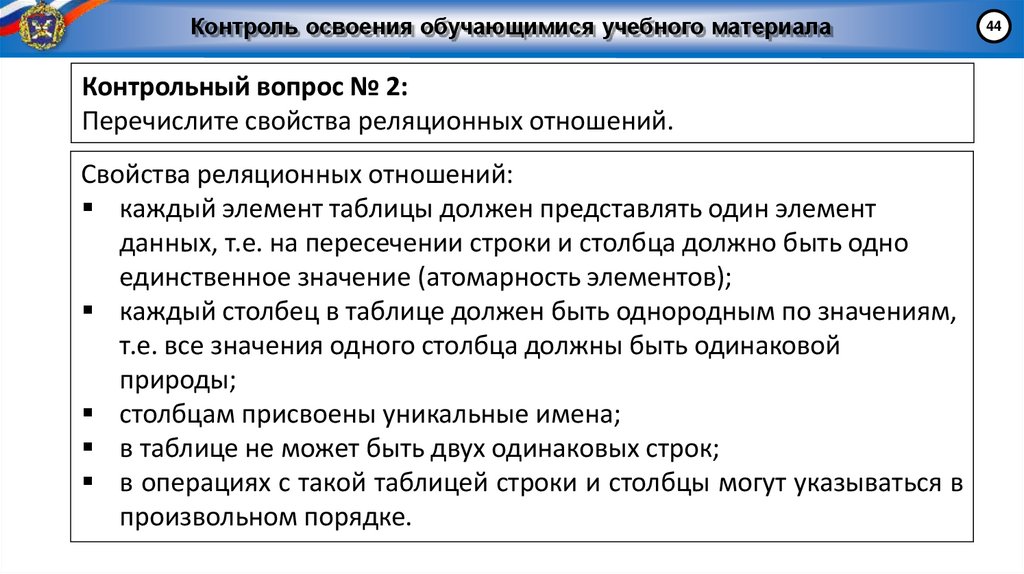 Контроль освоения обучающимися учебного материалаКонтрольный вопрос № 2: