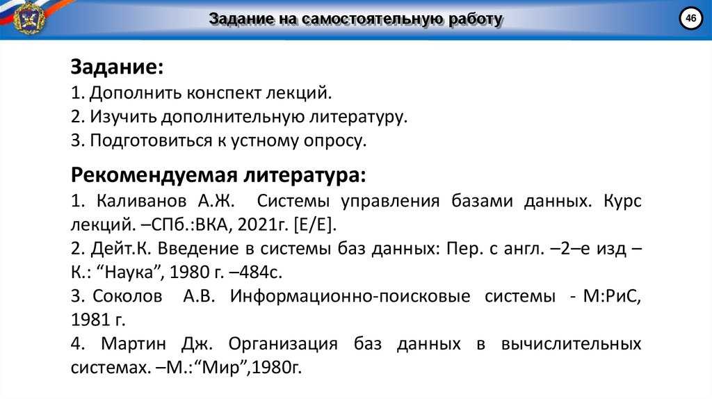 1. Каливанов А.Ж. Системы управления базами данных. Курс