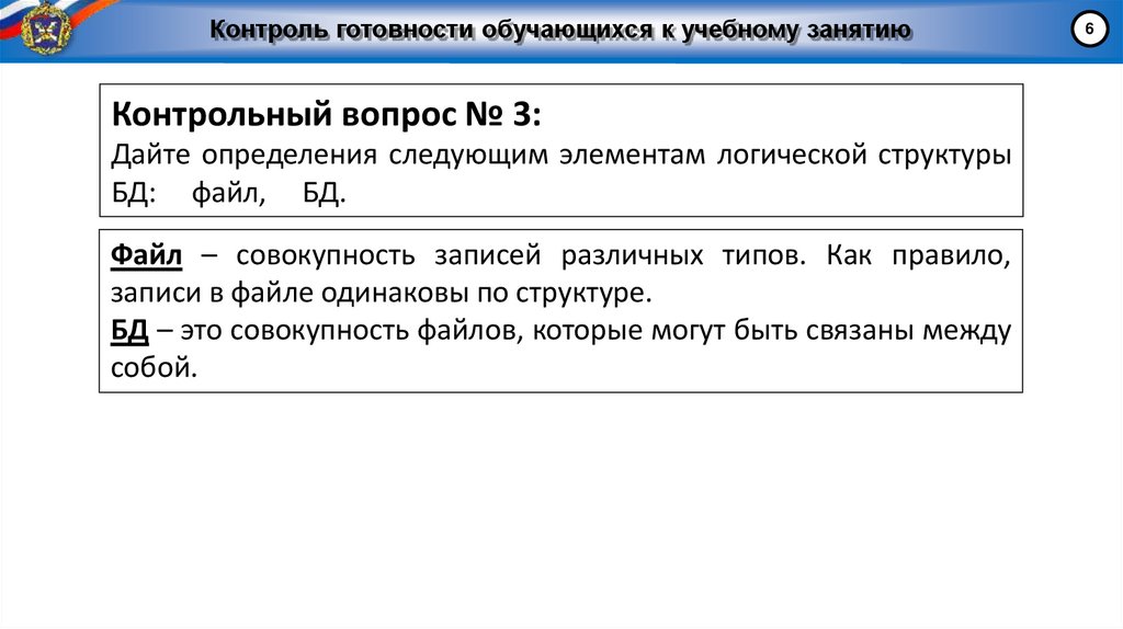 Контроль готовности обучающихся к учебному занятиюКонтрольный вопрос № 3: