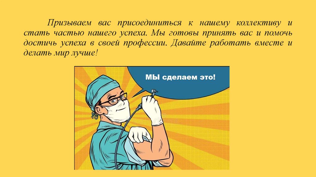 Призываем вас присоединиться к нашему коллективу истать частью нашего успеха. Мы готовы принять вас и помочь