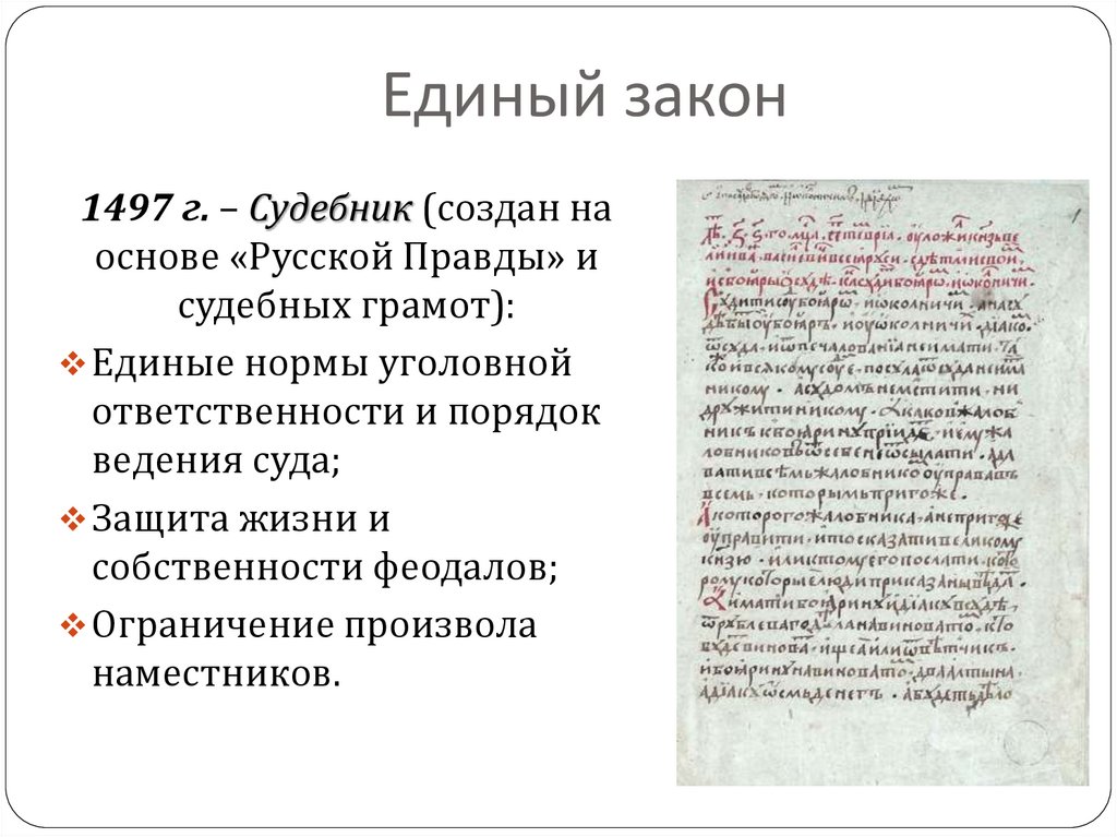 Единый законРаспределение земли