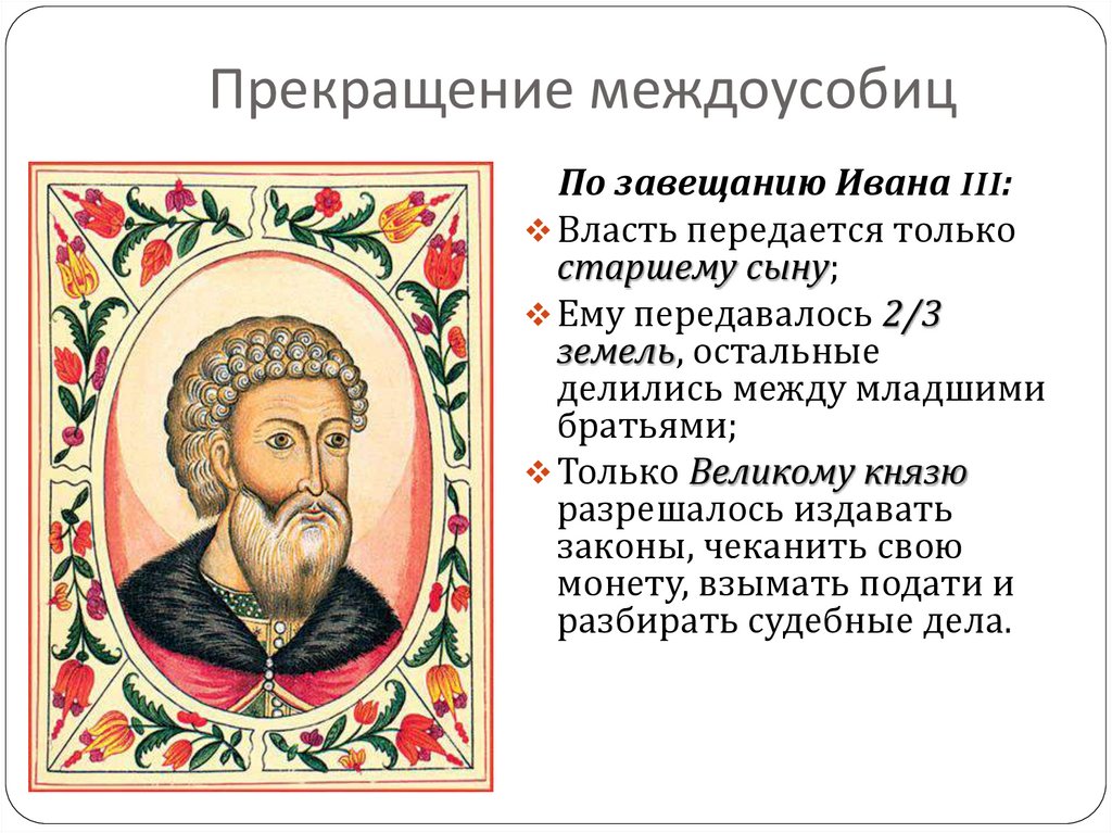 Прекращение междоусобицПо завещанию Ивана III: