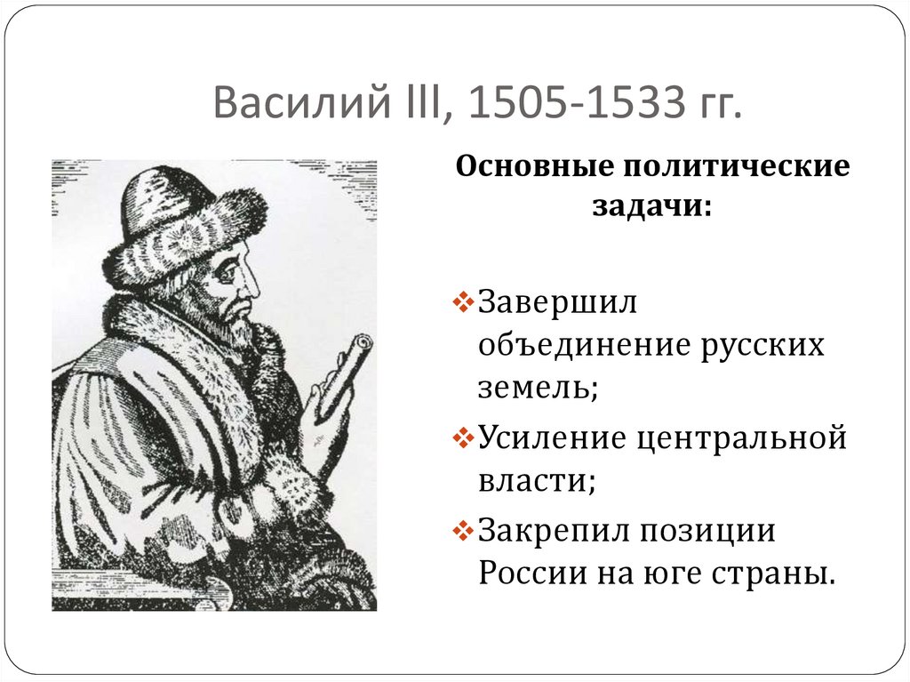 Василий III, 1505-1533 гг.Основные политические