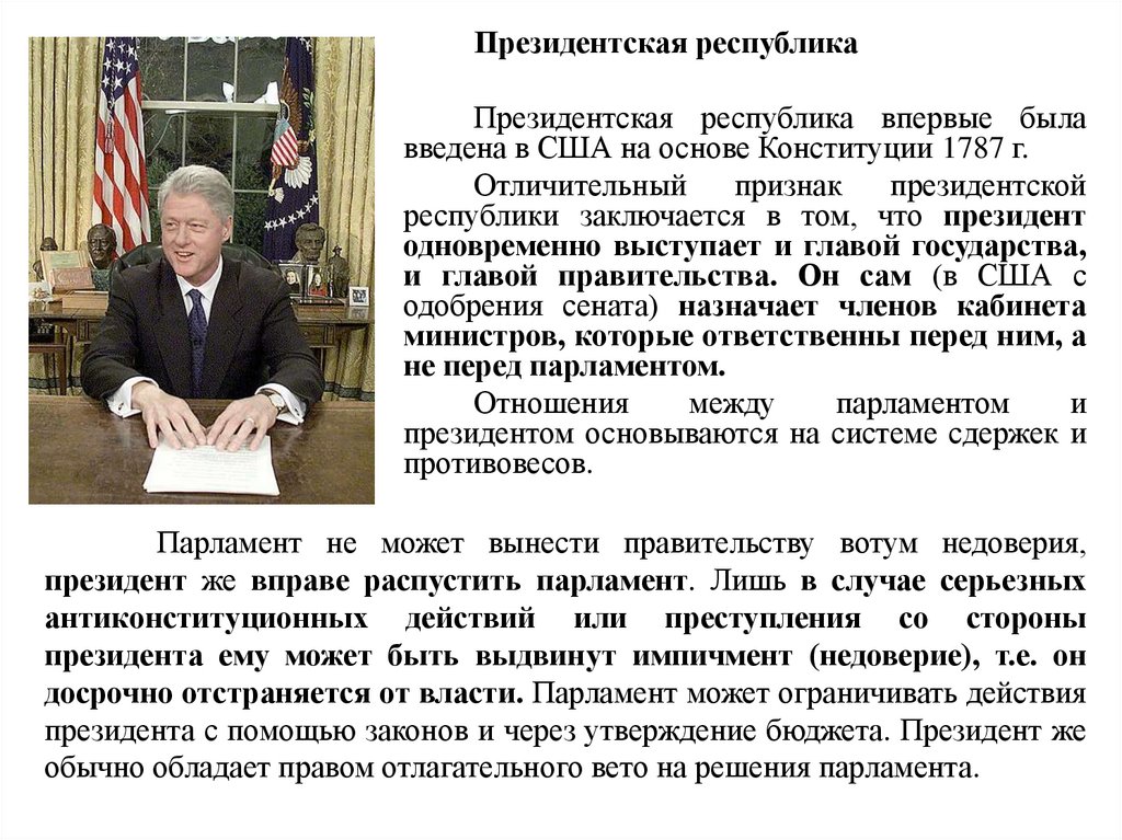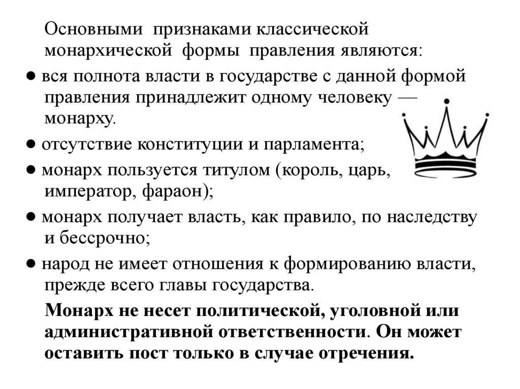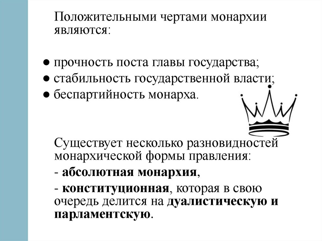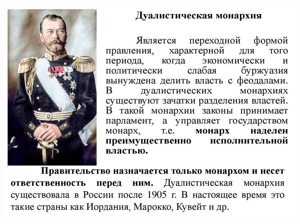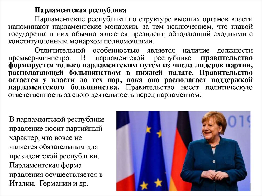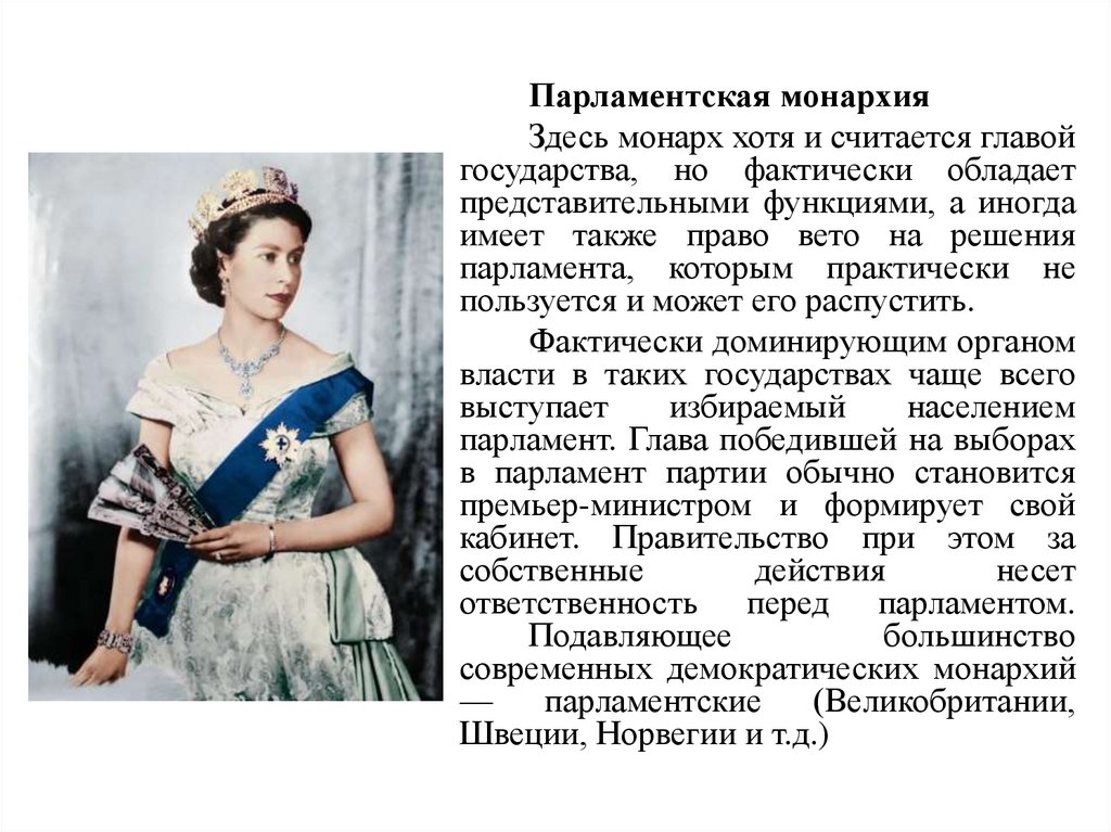 Парламентская монархияЗдесь монарх хотя и считается главой