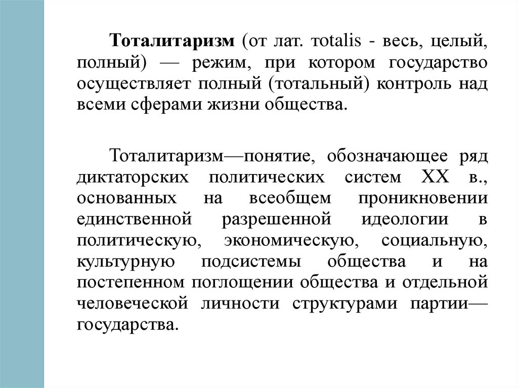 Тоталитаризм (от лат. тotalis - весь, целый,полный) — режим, при котором государство